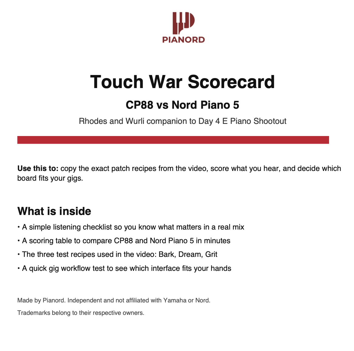 CP88 vs Nord Piano 5 electric piano decision matrix, plus Bark Dream Grit test recipes.